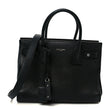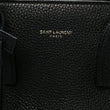 This is an authentic SAINT LAURENT Grained Calfskin Baby Sac De Jour Souple in Black. This bag is crafted of grained calfskin leather in black. The bag features rolled leather top handles, an optional cross-body shoulder strap, and silver hardware. The top opens to a black fabric interior with a removable zipper pouch.