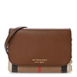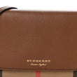 This is an authentic BURBERRY Grained Calfskin House Check Tartan Mix Hampshire Wallet On Chain in Tan. This lovely clutch is crafted of iconic house check printed canvas with calfskin leather in brown. The shoulder bag features a brown leather shoulder strap and matching leather front flap. The clutch opens to a matching leather interior with a zipper pocket, card slots, and patch pockets.
