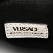 This is an authentic VERSACE Grained Calfskin La Medusa Bucket Bag in Optical White. This luxurious bag is crafted of Versace grained calfskin leather in white. The bag features a a gold Medusa head and a white crossbody strap. The top cinch cord opens to a black fabric interior.