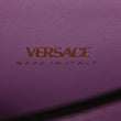 This is an authentic VERSACE Grained Calfskin La Medusa Shoulder Bag in Pink. This handbag is crafted of grained leather in pink. This bag features a front-facing medusa polished gold figure, an adjustable leather shoulder strap and polished gold hardware. The front flap opens to a partitioned purple leather interior with a front zipper compartment.