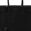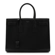 This is an authentic SAINT LAURENT Grained Calfskin Large Sac De Jour Carryall in Black. This spacious tote is beautifully crafted of lightly textured calfskin leather in black. The bag features sturdy rolled leather top handles, exterior straps on both the front and back that unsnap to release the accordion style top to reveal a partitioned black suede interior with zipper and patch pockets.