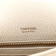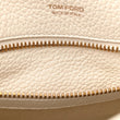 This is an authentic TOM FORD Grained Calfskin Large T Clasp Tara Crossbody Bag in White. This petite crossbody bag is crafted of grain calfskin leather, and features an adjustable crossbody strap with brass clasps and a decorative Upside down T emblem on the front flap. This opens to a beige fabric interior with a zipper pocket.