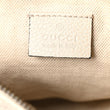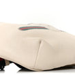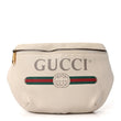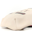 This is an authentic GUCCI Grained Calfskin Logo Belt Bag in White. This belt bag is crafted of white leather with a vintage Gucci logo. The bag features a nylon Gucci navy and red web belt and aged gold hardware. The front zipper opens to a beige natural fabric interior.