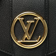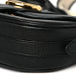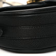 This is an authentic LOUIS VUITTON Grained Calfskin LV Pont 9 Soft PM in Black. This chic saddle bag is crafted of calfskin leather in black with a beige and black fabric shoulder strap and an LV medallion logo with magnetic closure on the front flap. This opens the bag to a beige leather interior with zippered and patch pockets.