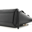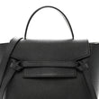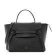 This is an authentic CELINE Grained Calfskin Micro Belt Bag in Black. This chic tote is crafted of grained calfskin leather in black with a structured and spacious silhouette. The bag features a leather strap top handle, optional shoulder strap with aged brass hardware, and a front-facing flap that is secured by decorative knotted straps. The facing flap opens to a suede interior with a hanging leather patch pocket.