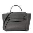 This is an authentic CELINE Grained Calfskin Mini Belt Bag in Grey. This chic tote is crafted of richly textured calfskin leather with a structured and spacious silhouette in grey. The bag features a leather strap top handle, an optional shoulder strap, and a facing flap secured by a strap and brass button. This stunning handbag opens to a grey suede leather interior with hanging pockets.