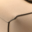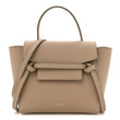 This is an authentic CELINE Grained Calfskin Nano Belt Bag in Light Taupe. This mini handbag is crafted of textured calfskin leather in beige with a matching leather top handle and removable adjustable shoulder strap. The crossover flap opens with a magnetic snap to an overextended top zipper and a beige suede interior.