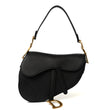 This is an authentic CHRISTIAN DIOR Grained Calfskin Saddle Bag in Black. This chic bag is crafted of grained calfskin leather in black. This bag features the saddle bag shape, short leather shoulder strap with a polished aged gold "C" and "D" anchors on either end of the handle for handle and a prominent hanging Dior "D" charm. The interior of the bag is a black microfiber textile with a zipper pocket.