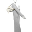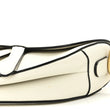 This is an authentic CHRISTIAN DIOR Grained Calfskin Saddle Bag in White. This distinctive Dior contemporary classic features the saddlebag style in white leather with a front flap. It has a short white leather shoulder strap with an aged gold "C" and "D" on either end of the handle for handle rings, and a prominent hanging Dior "D" charm. The interior of the bag is suede leather with a zipper pocket.
