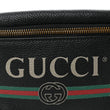 This is an authentic GUCCI Grained Calfskin Small Logo Belt Bag in Black. This chic belt bag is crafted of grained black calfskin leather, with a vintage Gucci logo on the front. This bag has an adjustable red and green web stripe canvas belt, and an aged gold top zipper that opens to a natural fiber interior.