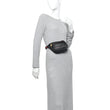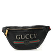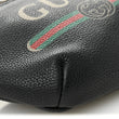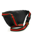 This is an authentic GUCCI Grained Calfskin Small Logo Belt Bag in Black. This chic belt bag is crafted of grained black calfskin leather, with a vintage Gucci logo on the front. This bag has an adjustable red and green web stripe canvas belt, and an aged gold top zipper that opens to a natural fiber interior.