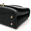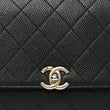 This is an authentic CHANEL Grained Calfskin Small Stitched Flap in Black. This sleek classic tote is crafted of grained caviar calfskin leather in black. The shoulder bag features a black leather handle, an aged gold chain link shoulder strap with a shoulder pad, a rear patch pocket, and a gold CC turn clock closure. This opens the flap to a partitioned black fabric interior with zipper pockets.