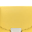 This is an authentic CELINE Grained Calfskin Small Trotteur in Yellow. This chic shoulder bag is crafted of grained calfskin in yellow. The bag features a cross body shoulder strap with a sikver adjustment buckle and a pocket on the rear. The flap opens to a matching leather interior with patch pockets.