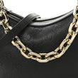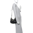 Grainy Calfskin GG Embossed Emblem Small Half Moon Shoulder Bag Black