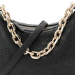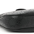 Grainy Calfskin GG Embossed Emblem Small Half Moon Shoulder Bag Black