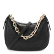 This is an authentic GUCCI Grainy Calfskin GG Embossed Emblem Small Half Moon Shoulder Bag in Black. This Gucci hobo is beautifully crafted of embossed black calfskin leather. The bag features a gold chain strap, an optional black leather shoulder strap, and gold hardware. The top zipper opens to a beige fabric interior with a zipper pocket.
