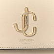 This is an authentic JIMMY CHOOG Grainy Calfskin JC Top Handle in Tan. This stylish crossbody is crafted of grained beige calfskin leather. The handbag features a leather top handle, gold chain shoulder strap with a leather shoulder pad, and polished gold hardware. This bag opens to a beige fabric interior with zipper and patch pocket.
