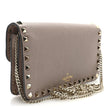 Grainy Calfskin Rockstud Chain Pouch Poudre