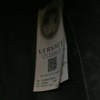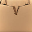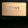 This is an authentic VERSACE Grainy Calfskin Virtus Top Handle Tote in Beige. This chic shoulder bag is crafted of grained calfskin leather in beige. The bag features a leather top handle and optional shoulder strap, and a magnetic closure with a polished gold V. The top opens to a black fabric interior with a patch pocket.