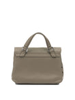 Elevate your everyday style with this exquisite satchel from Zanellato, a masterpiece of Italian craftsmanship. Crafted from luxurious pebbled leather in a sophisticated taupe-gray tone, this structured handbag features distinctive dual turn-lock closures and refined top handles for effortless carrying.