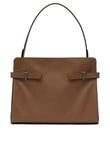 Elevate your everyday style with this sophisticated structured handbag from Le Tanneur. Crafted in rich tan leather, this timeless piece features elegant hardware detailing with dual buckle straps that add a refined touch to the classic silhouette.