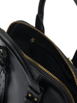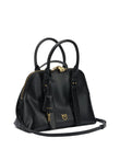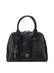 Elevate your everyday style with this sophisticated satchel from Pinko. Crafted in luxurious black leather, this structured handbag features elegant dual top handles, gleaming gold-tone hardware, and a secure clasp closure that combines form with function.