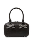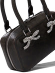 Elevate your evening ensemble with this exquisite structured satchel from Self-Portrait. Crafted in luxurious black with a sleek, boxy silhouette, this handbag features stunning crystal-embellished bow details that add a touch of glamour and sophistication.