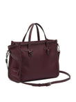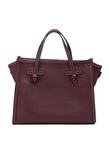 Elevate your everyday style with this sophisticated satchel from GIANNI CHIARINI. Crafted in rich burgundy textured leather, this structured handbag features a classic trapeze silhouette with elegant winged sides and contrast stitching detail.