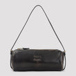 Introducing the Miu Miu Handle Container, a distinctive cylindrical shoulder bag that redefines contemporary luxury. Crafted from supple 100% lamb leather in a sleek black finish, this compact yet sophisticated piece features an adjustable shoulder strap for versatile wear. The unique barrel silhouette and premium construction make it a statement accessory that effortlessly transitions from day to evening. With its compact dimensions (21cm W x 8cm H x 9cm D), this Miu Miu creation is perfect for carrying your essentials while maintaining an elevated, fashion-forward aesthetic. A must-have piece for the modern woman who appreciates innovative design and Italian craftsmanship.