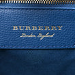 This is an authentic BURBERRY Flower Print Check Small Canterbury Tote in Mineral Blue and Burnt Orange. This shoulder bag is crafted of check flower printed coated canvas, blue leather trim, and gold hardware. The top opens to a blue fabric interior.