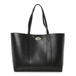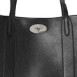 This is an authentic MULBERRY High Shine Grain Bayswater Tote in Black. This stylish tote is crafted of luxuriously grain leather in black. The shoulder bag features leather strap, removable pouch and a polished silver oval union jack turn lock. This opens to a burgundy suede interior.