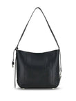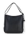 BLACK LEATHER ADJUSTABLE SHOULDER STRAP MAGNETIC FASTENING MAIN COMPARTMENT REMOVABLE POUCH SILVER-TONE HARDWARE