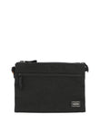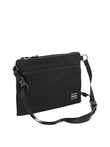 Porter-Yoshida & Co "Hybrid" crossbody bag made of X-C1000 fabric developed in collaboration with Dimension-Polyant and Invista, featuring 1000-denier Cordura nylon structure woven diagonally with X-PLY polyester. The silhouette is defined by essential lines and compact shapes, with smooth front panel and side gusset made of X-PLY for stable construction. Inner PET foil seals the weave and provides waterproofing.