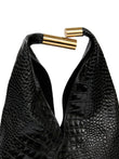 Crafted in luxurious black leather with an eye-catching croco-embossed texture, this sophisticated satchel features a classic top handle design and an open-top silhouette for effortless access to your essentials.