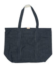 Tote bag "Jean" Porter-Yoshida & Co. Structure made of original nep denim, obtained by low-tension weaving. The fabric employs 100% indigo-dyed irregular warp yarns and 100% organic cotton weft yarns, creating a distinctive texture. Natural tanned leather accents are inserted on the handles and opening. Interior with off-white finish and multiple compartments for organization.