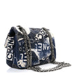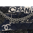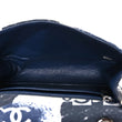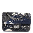 This is an authentic CHANEL Jersey Quilted Graffiti 2.55 Reissue 225 Flap in Black and White. This stylish shoulder bag is beautifully crafted of diamond quilted fabric in dark blue with camellia and Chanel logos. The bag features polished ruthenium mademoiselle chain shoulder straps and a squared Mademoiselle turn lock. The front flap opens to a dark blue leather interior with a patch and zipper pocket.