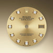 - Dial color: Champagne-colour dial with a fine sunrays and 10 Diamonds as hour markers framed in 18k Yellow Gold