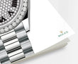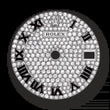 - Dial color: Diamond-paved dial, set with 291 diamonds and applied polished black Roman numerals as hour markers