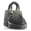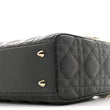 This is an authentic CHRISTIAN DIOR Lambskin Cannage Gradient Small My ABCDior Lady Dior in Grey. This stylish tote is crafted of cannage quilted lambskin leather in grey. The bag features reinforced leather handles, an optional shoulder strap with a heart charm and a "S" charm, and light gold hardware including the Dior logo charms. The top inner flap opens to a dark grey suede interior with zipper and patch pockets.