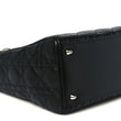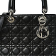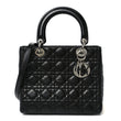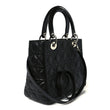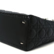 This is an authentic CHRISTIAN DIOR Lambskin Cannage Medium Lady Dior in Black. This tote is crafted of black cannage quilted lambskin leather and silver hardware. The top opens to a red fabric interior.