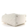 This is an authentic CHRISTIAN DIOR Lambskin Cannage Medium Lady Dior in White. This super chic tote is crafted of geometric-quilted lambskin leather in white. The bag features sturdy leather top handles with polished silver hardware, including hanging Dior initials logo charms. The top zipper opens the bag to a beige Dior monogram jacquard fabric interior with a zipper pocket.
