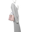 This is an authentic CHRISTIAN DIOR Lambskin Cannage Medium Tri-Color Lady Dior in Rose Pale. This stylish structured tote is crafted of cannage quilted lambskin leather in a color block style. The bag features accents of muted lavender, mauve, and pale pink leather throughout, reinforced leather top handles with an optional shoulder strap and polished light gold complimentary hardware. The top zipper opens to a lilac leather interior with a zipper pocket.