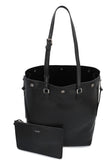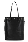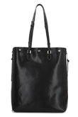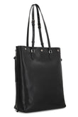 MODEL IN BLACK CALF LEATHER WITH TWO LONG HANDLES. IT FEATURES AN INTERNAL POUCH WITH A ZIP CLOSURE. THE CLOSURE IS TOP WITH AUTOMATIC BUTTONS. THE INTERIOR IS IN SUEDE AND THE HARDWARE IS IN SILVER METAL.
