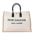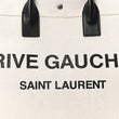 This is an authentic SAINT LAURENT Linen Calfskin Rive Gauche Tote in Optic White. This tote is crafted of off-white linen with Rive Gauche, Saint Laurent printed across the front. The tote features tall black leather handles and opens to a spacious interior with a hanging zipper pocket.