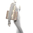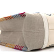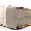 Linen Canvas Calfskin Blanket Stitched Medium Woody Ribbon Tote White Multicolor