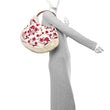 Lizard Canvas Embroidered Peggy Bamboo Top Handle Hobo White Pink