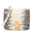 This is an authentic CELINE Lizard Small Classic Box Flap Bag in Natural. This stunning cross-body shoulder bag is crafted of luxurious lizard leather in beige and black. The shoulder strap is a matching lizard leather and the cross-over flap opens with an aged gold press-lock to a partitioned brown leather interior with a pocket.