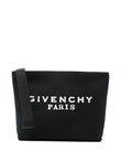 Elevate your everyday essentials with this sophisticated Givenchy logo cotton pouch. Crafted in sleek black cotton canvas, this versatile wristlet features the iconic Givenchy Paris branding in crisp white lettering for an unmistakable designer touch.