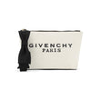Elevate your everyday essentials with the Givenchy LOVO Cotton Pouch. This chic beige accessory features a charming bow detail and sophisticated gold-tone hardware, combining luxury with practicality. The top zip fastening ensures your belongings stay secure, while the cotton construction with black trim offers a refined, lightweight design. Perfect for organizing cosmetics, tech accessories, or daily essentials, this versatile pouch transitions seamlessly from day to night. A timeless piece that embodies Givenchy's signature elegance and craftsmanship.
