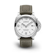 Unworn Men’s Watch Panerai Luminor Marina - 44mm of polished Stainless steel case, Reference PAM01314. The model has White dial with silver-tone polished steel hour and minute hands with luminous fill. This watch is engraved large silver-tone combination of Arabic numeral the 6, 9, 12 o’clock positions and large silver-tone Index hour markers with luminous fill. At the 9 o’clock position of the dial is located small seconds sub-dial with luminous silver-tone polished steel leaf-shaped hand. Marked every 15 minutes with bold luminous indices. This Officine Panerai signature element speaks innovation and seamless function. Date window located 3 o'clock position. The dial closed by a Scratch-resistant Sapphire Crystal. The watch has Panerai's (protected as a trademark) instantly recognizable crown protector and screws down the crown of polished Stainless steel with a ribbed edge for a comfortable grip. They have case shape Round and solid case back of Stainless steel made. The watch is equipped fixed polished Stainless steel bezel. The Model comes with Automatic mechanical movement Panerai in-house Caliber P.9010 contains 31 Jewels and has an approximate 3-day (72-hour) power reserve. The watch presented on a Scamosciato Black leather strap with Ecru Stitching and secured by a Tang Buckle Clasp of Stainless steel. The water resistance is up to 300m/1000ft.